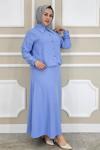 Oppland Kadın Tesettür Takım Pamuklu Keten Kumaş Kolyeli Gömlekli Etekli Oversize OPKTT25SRNMOD44