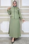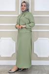 Oppland Kadın Tesettür Takım Pamuklu Keten Kumaş Kolyeli Gömlekli Etekli Oversize OPKTT25SRNMOD44