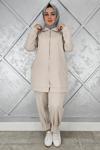 Rahatlığın modern çizgilerle buluştuğu bu özel takım, zamansız bir zarafeti günün her anına taşıyor. Yumuşacık dokusu ve özenle işlenmiş detaylarıyla, her adımda konforu hissettirirken sofistike bir görünüm kazandırıyor.