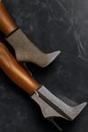 Taş detayları ile ışıltı saçan bu bilek boy bot, ince topuk tasarımıyla zarafeti ayağınıza taşıyor. Süet görünümü ve parıltılı yüzeyi ile hem günlük hem özel davet kombinlerinizde rahatlıkla kullanabilirsiniz. Yan fermuarı sayesinde pratik giyilip çıkarılabilir, iç tabanı ise gün boyu konfor sağlar. Şıklık ve rahatlığı bir arada arayanların favorisi olacak.