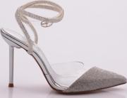 DGN Kadın Taş İşlemeli Topuklu Terlik Gümüş Ayna 110983327