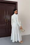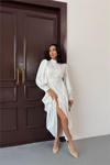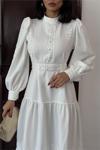 Ürün 36-42 bedene kadar uyumludur, astarsız, uzun kol, dantel detaylı, hakim yaka, likralı ve esnek kumaş.