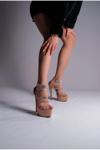 Neon parlaklığı ve taş işlemeli bantlarıyla bu sandalet göz alıcı stilin en çarpıcı tamamlayıcısıdır Yüksek platformu ve zarif ince topuk yapısıyla hem etkileyici görünüm hem de dengeli duruş sağlar Partilerden dans pistine kadar seni daima bir adım önde tutar