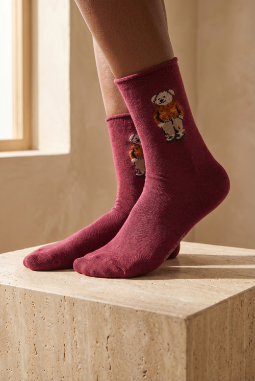 Katia & Bony kalitesiyle sunulan bu modal lastiksiz çorap, hem konforu hem de şıklığı bir arada sunar. Üzerindeki Teddy deseni ile stilinize eğlenceli bir dokunuş katarken, lastiksiz yapısı sayesinde bacaklarda iz bırakmaz. Gün boyu rahat kullanım sağlayan bu çorap, hassas cilde sahip kullanıcılar için idealdir.