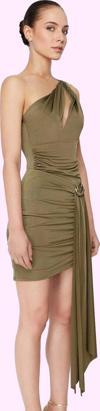 Bu haki tek omuz mini elbise, 95% polyester ve 5% elastan kumaştan üretilmiştir. Tüm bedenlerde mevcut olup, kolay bakım gerektirir. 80 derecede makinede yıkanabilir. Ürün ölçüleri: [Burada ürünün detaylı ölçüleri yer alacak. Örnek: Göğüs: 86 cm, Bel: 70 cm, Kalça: 94 cm, Uzunluk: 80 cm] Elbisenin mükemmel oturuşu ve şık tasarımı, size unutulmaz bir stil kazandıracaktır.