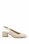 * Suni Deri Kısa Kalın Topuklu Arkası Açık Ayakkabı