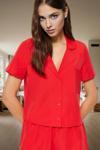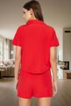 Pijamoni Kadın Süet Önden Düğmeli Pijama Takımı 56608 - 1 Adet Kırmızı-L - Image 1