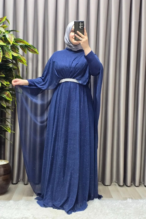 - Zarif renkleriyle göz alıcı bir görünüm sunan bu pelerinli abiye, her özel anınızda şıklığınızı tamamlar.