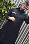 Ka Hijab Işıltı Detay Etekli Merserize Takım - Lacivert