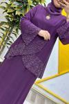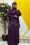 Puantiye Desenli Rüya Tesettür Abiye Mürdüm - Image 1