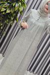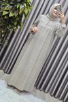 BAV Butik Ayvitrin Kadın Melenj Keten Tesettür Elbise Krem