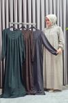Elmas Tesettür Kadın Tesettür Giyim Büyük Beden Kolu Şeritli Elbise