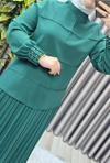 Ka Hijab Cep Detay Etekli Takım - Yağ Yeşili
