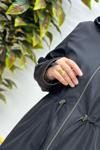 Hafsa Mina Çizgi Detaylı Trençkot Siyah HM2283