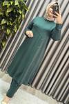 Ka Hijab Çift Cep Düğme Detay İkili Triko Takım - Zümrüt