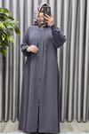 Broşlu Büyük Beden Ferace Füme  HM2843 - Image 1