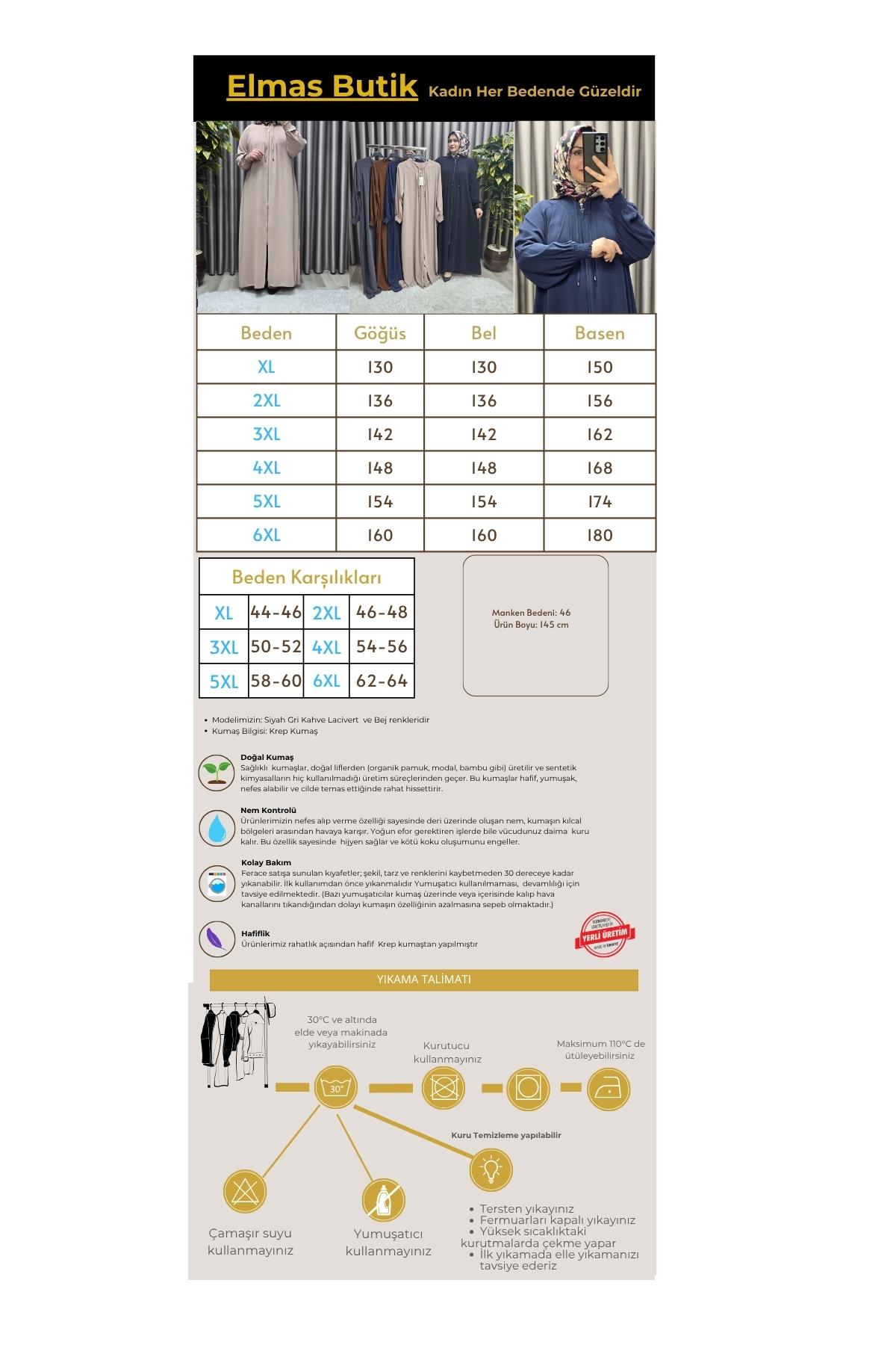 Elmas Tesettür Kadın Tesettür Giyim Büyük Beden İki Katlı Ferace