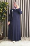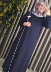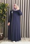Hürrem Bone Lacivert İki Parça Namaz Elbisesi Pamuk Kumaş Dantelli 2205_02 - Image 1