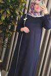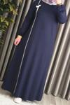 Hürrem Bone Lacivert İki Parça Namaz Elbisesi Pamuk Kumaş Dantelli 2205_02