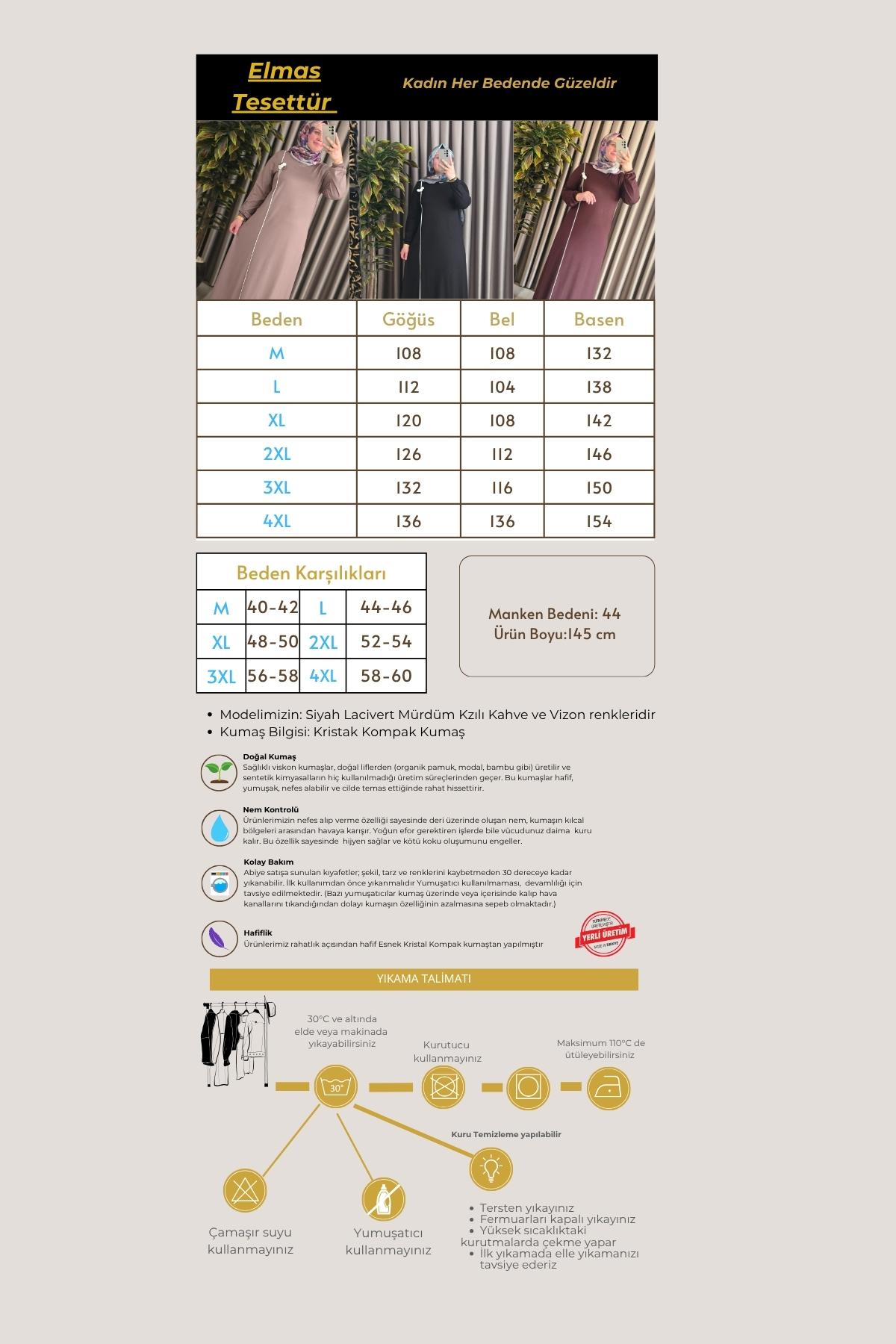 Elmas Tesettür Kadın Tesettür Büyük Beden Giyim Nervür Elbise