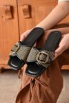 SL01 Kadın Tokalı Terlik Günlük Şık Hasır Rahat Yumuşak Bohça Misafir Deniz Ev Plaj SL01