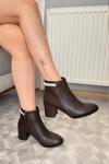 Kadın Trend Acı Kahve Arkadan Taşlı ( 6 cm ) Topuklu Oval Burun Bot