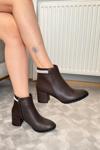 Preshley Kadın Trend Acı Kahve Arkadan Taşlı ( 6 cm ) Topuklu Oval Burun Bot