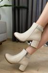 - Ürün Detayı: Yeni Sezon 6 cm Kalın Topuklu Bilek Arka Kısmından Taş Detaylı Bilek Üzeri Bot