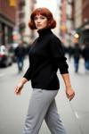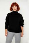 Ürün Özellikleri: Relaxed kalıp, akrilik materyal, düz desen, dik yaka, düşük kol, triko kumaş, siyah renk.