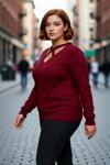 Ürün Özellikleri: Regular kalıp, akrilik materyal, düz desen, V yaka, standart kol, triko kumaş, bordo renk.