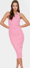 Zarif ve modern görünümüyle dikkat çeken bu midi elbise, gardırobunuzun vazgeçilmez parçalarından biri olacak. Yüksek kaliteli triko kumaştan üretilen elbise, gün boyu konforlu bir kullanım sunuyor. Bodycon kalıbı ile vücut hatlarınızı kusursuz bir şekilde sergileyen elbise, belinizi zarifçe saran kemer detayı ile feminen bir görünüm kazandırıyor. Polo yaka tasarımı ve ince kalınlığı ile yaz aylarında serin ve şık kalmanızı sağlayan elbise, ister günlük hayatta ister özel davetlerde kullanabileceğiniz çok yönlü bir seçenek.