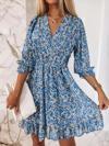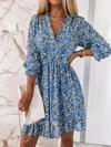 Kadın Truvakar Kol Kruvaze Yakalı Beli Lastikli çiçek Desenli Süprem Elbise