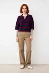 Ersefa Kadın Truvakar Kol Polo Yaka Çizgili Triko Kazak Basic Rahat Kesimiyle Şık ve Konforlu Günler İçin
