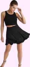 Örme kumaşın yumuşak dokusu, yaz sıcağında bile rahat hissetmenizi sağlar. Tül dokusu, eteğe havadar ve hareketli bir görünüm katarken, astarlı yapısı, konforlu bir deneyim sunar. Fırfırlı detay, eteğe feminen ve şık bir dokunuş ekler. Mini boyu, bacaklarınızı olduğundan daha uzun gösterir. Shift silüeti, vücudunuza mükemmel bir şekilde oturur ve hareket özgürlüğü sunar. Siyah rengi, her türlü üst ve ayakkabı ile kolayca kombinlenebilir.