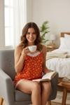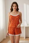 Kadın Turuncu Kalp Desenli Askılı Şortlu Dantelli Pijama Takımı