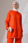 - Üst: Bisiklet yaka, çiçek nakış detayları ve yan yırtmaç