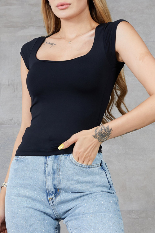 U Yaka Kısa Kol Likralı Body