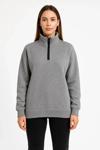 Kadın Üç İplik Dık Yaka Yarım Fermuarlı SweatShirt - Gri