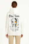 Lumiart Baskılı Üç İplik Kapüşonlu Oversize Sweatshirt - Beyaz