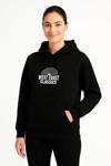 Mzp Kartan Kadın Üç İplik Kapüşonlu Ön ve Arka Baskılı SweatShirt hoodie - Siyah