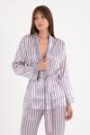 Gri Satenin Zarafeti: Kadın Üçlü Çizgili Pijama Takımıyla Konforlu Şıklık