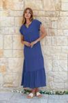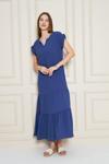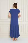 Mihrim Butik Bürümcük Omuz Büzgülü Beli Lastikli Elbise Mavi