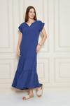 Pasaklı Giyim Kadın Uzun Eteği Fırfırlı Kısa Kol Apolet Detaylı Salaş Günlük Rahat Elbise 3761366