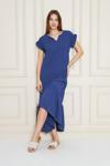 Asil Acar Home Kadın Yarım Ay Kollu Bisiklet Yaka Yandan Drapeli Ithal Krep Elbise