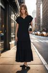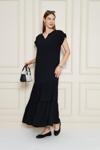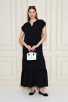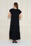 V yaka tasarımıyla zarif ve feminen bir duruş sergileyen kadın elbise; salaş eteği ve fırfır detaylarıyla hareketli bir görünüm sunar. Kısa apolet kol detayı, modern ve şık bir dokunuş katarken, 130 cm boyuyla hem günlük hem klasik kombinlere uyum sağlar. %60 pamuk ve %40 polyester içeren aerobin kumaş yapısı sayesinde hafif, kırışıklığa dayanıklı ve dökümlü bir formdadır. Astarsız yapısı ile ekstra hafiflik sunan bu yazlık elbise, rahat kesimiyle gün boyu konfor sağlar. Cepsiz tasarımı sadeliği ön plana çıkarırken, ütü istemeyen dokusu pratik kullanım avantajı sunar. Şık kombinler, tatil stili, ofis şıklığı ya da şehir hayatı için ideal bir seçimdir. Günlük elbise arayanlar için hem rahat hem stil sahibi bir alternatif.