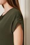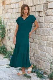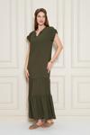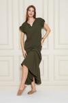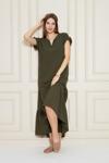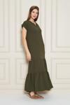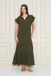 Mihrim Butik Askılı Yırtmaç Detaylı Yazlık Uzun Elbise Haki