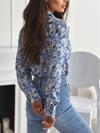 Kadın Uzun Kol Cep Detay çiçek Baskılı Mosskrep Kumaş Gömlek