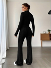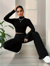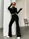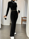 Kadın Uzun Kollu Balıkçı Yaka Krop Ve Pantolon şardonlu Kaşkorse Ikili Takım