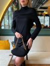 Kadın Uzun Kollu Balıkçı Yaka Omuz Katlamalı Dalgıç Kısa Elbise