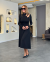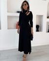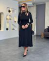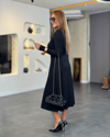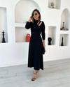 Kadın Uzun Kollu Balıkçı Yaka Omuzda Damla Detaylı Yırtmaçlı Krep Midi Elbise